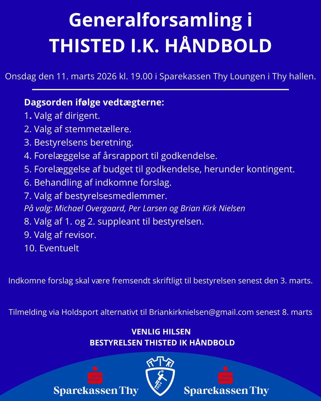 Vi ses den 11/3 i Thy Hallen - husk at tilmelde dig via Holdsport.